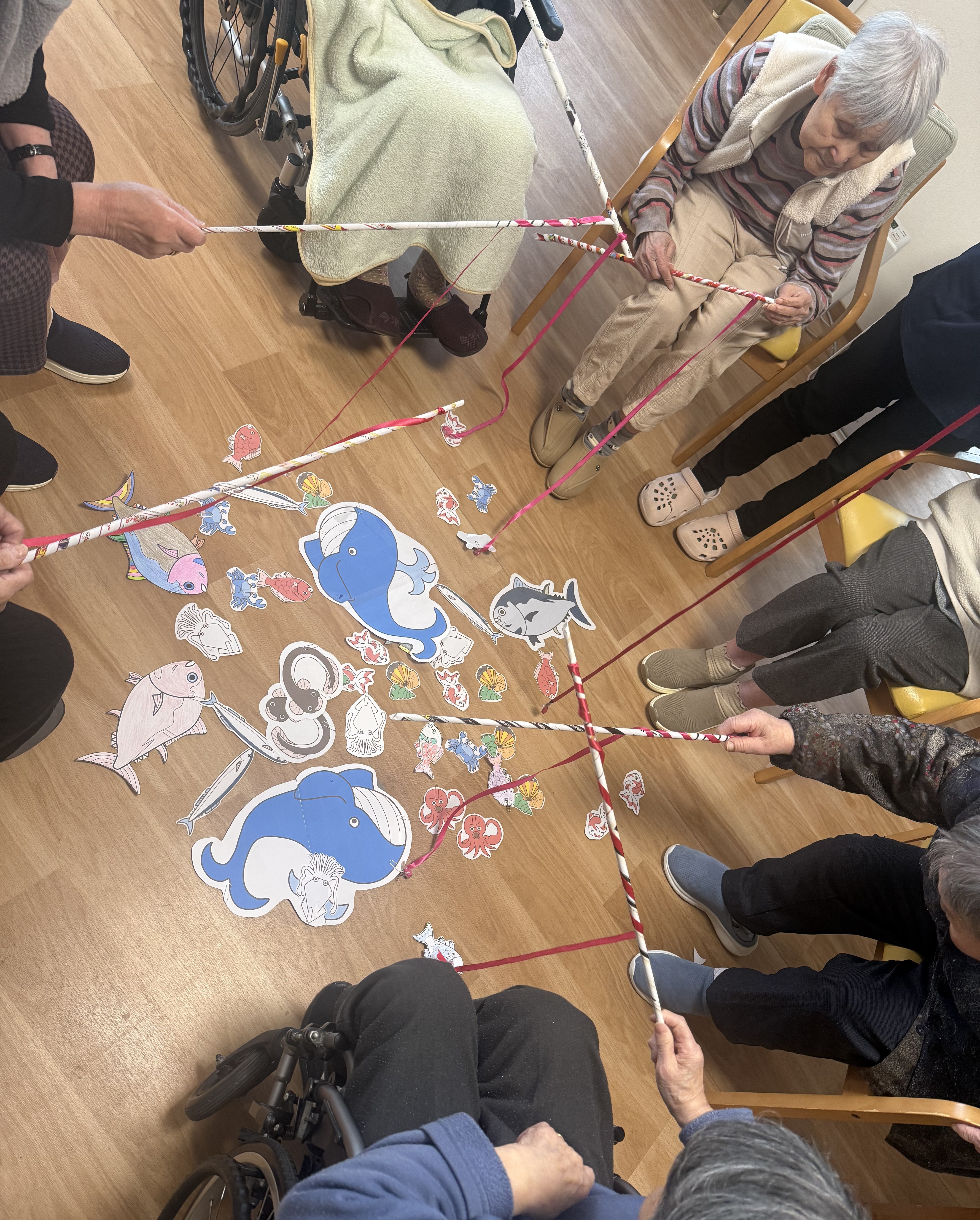 新着情報 NEWS ~2026 謹賀新年~ 2026.01.07 新年あけましておめでとうございます。 皆さまお健やかに新しい年を迎えられ、施設内には晴れやかな笑顔と温かな雰囲気が広がっています。 本年も、何気ない日常やレクリエーションのご様子をブログを通してお届けしてまいります。 さっそくですが、令和8年第一回目のレクリエーションのご様子です。 釣り竿で魚や貝を釣っています。 実はこちら、12月に利用者さんに塗って頂いたお魚たちです。 ご自身で塗ったお魚を釣って、今日の夜ご飯だよね~と笑顔をたくさん頂きました。 それにしても、本当に真剣で大物狙う姿は、まるで漁師さん。勇ましい一面を見せて頂きました。 一覧に戻る