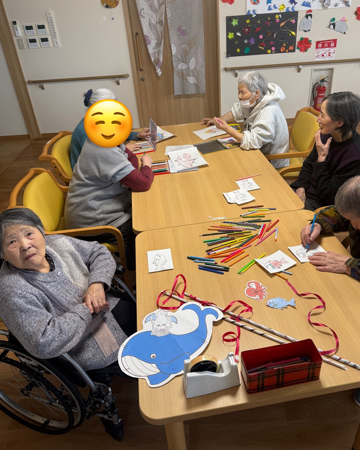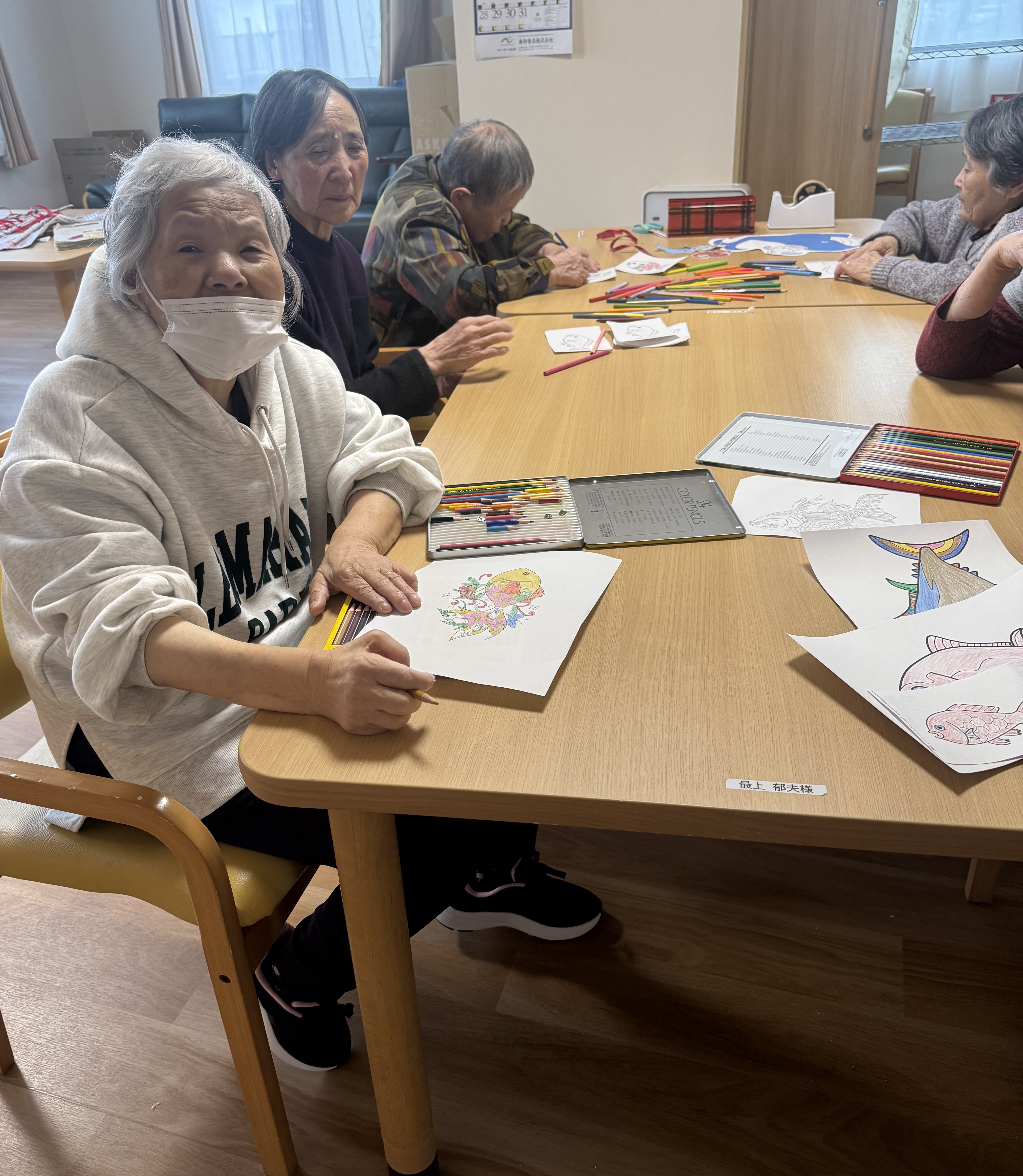 この塗って頂いたお魚たちは、後日のレクリエーションで使いますので、ぜひ更新をご確認ください✨
