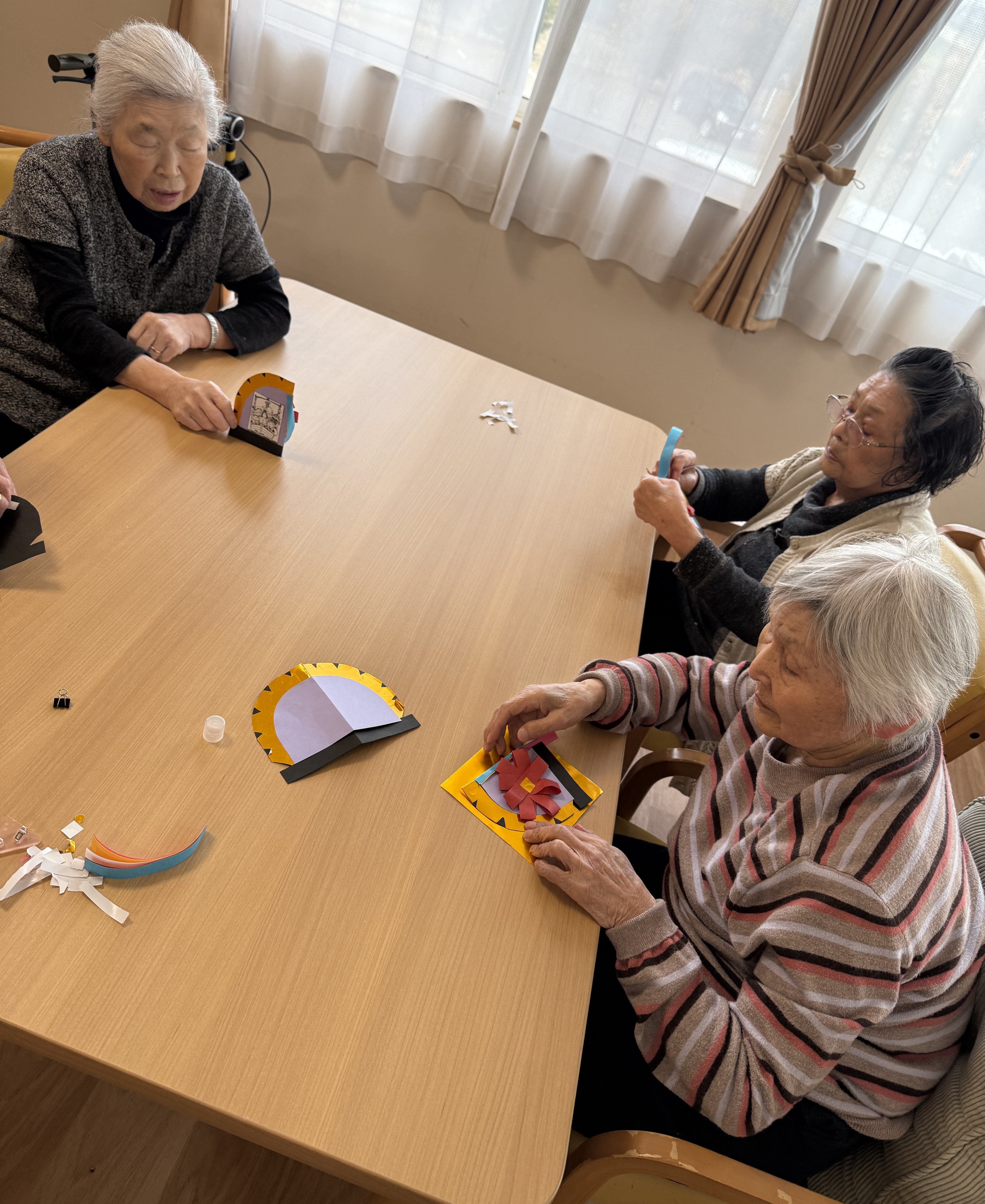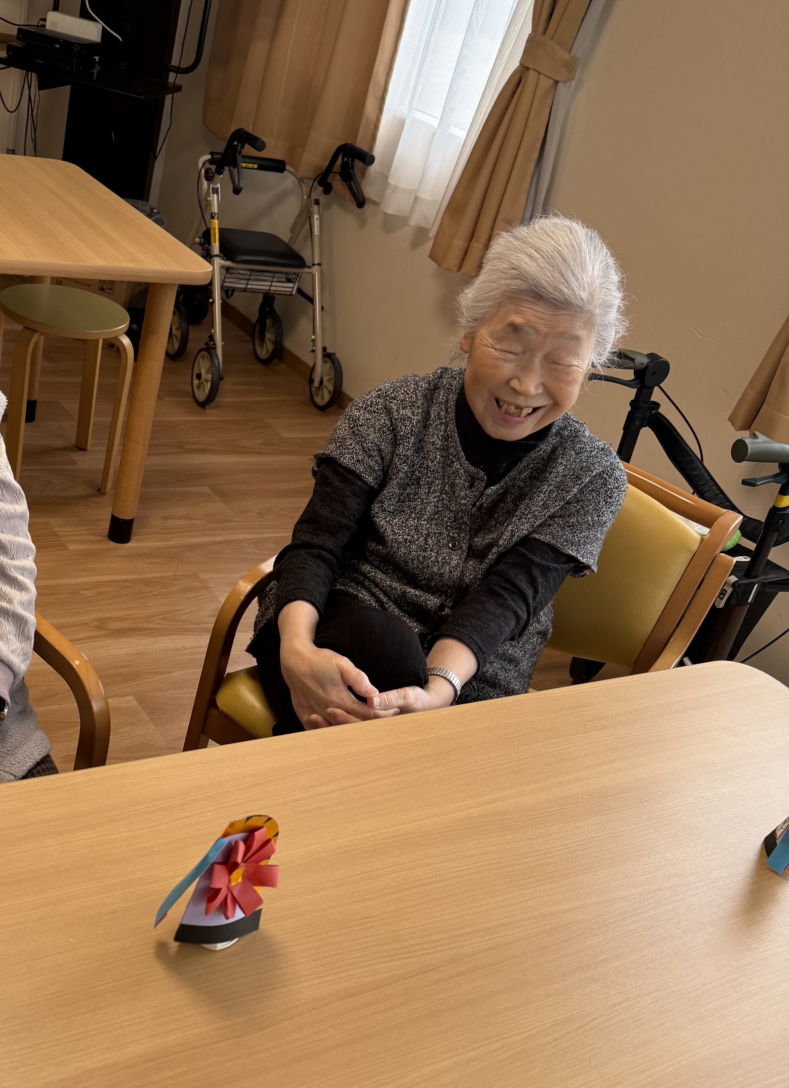 新着情報 NEWS 八戸えんぶり 2026.02.24 【冬の魅力度ランキング】で八戸市が第5位に選出されましたね! 八戸えんぶりや冬の港町ならではの美味しい「食」が評価の決め手だそうで。 八戸えんぶりは終わってしまいましたが、当施設ではえんぶり見学に行けなかった利用者様に、何とかえんぶりの季節を感じて頂きたく、烏帽子作りをしました。 ミニチュアサイズでしたので被ることは出来ませんが、皆様一生懸命完成させて下さいました。 お互い、ここに貼る方が良いんじゃない?などアドバイスし合いながら真剣に取り組んで頂き、楽しかった~の言葉は最高に嬉しい気持ちになりますね。 私の烏帽子、ちゃんと立つわよ~と楽しそうな利用者様。 一覧に戻る